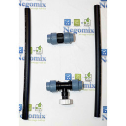 Cet ensemble est composé des adaptateurs, raccords et tuyaux vous permettant de rajouter 1 cuve de récupération d'eau de pluie supplémentaire à notre kit horizontal de base pour 2 cuves et de rendre ainsi infini votre capacité de stockage.